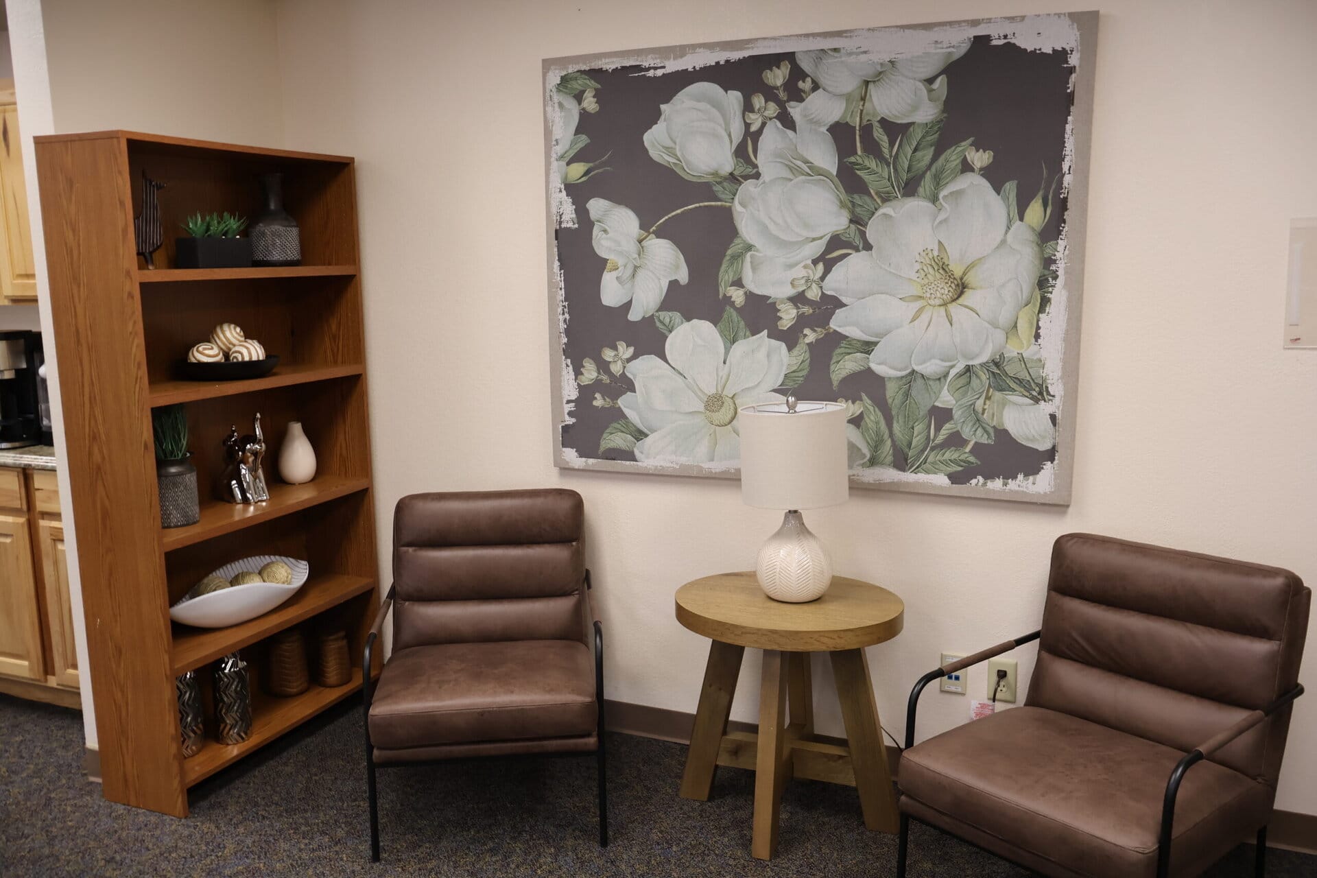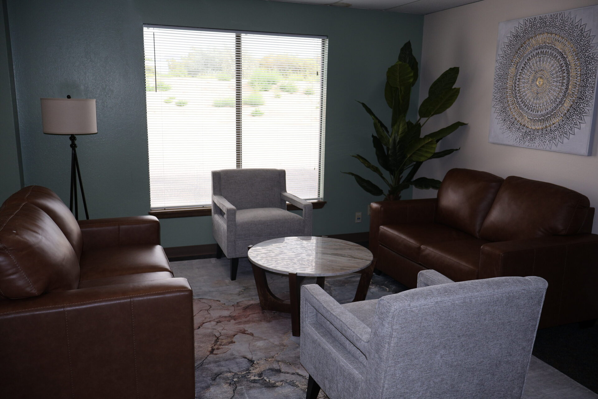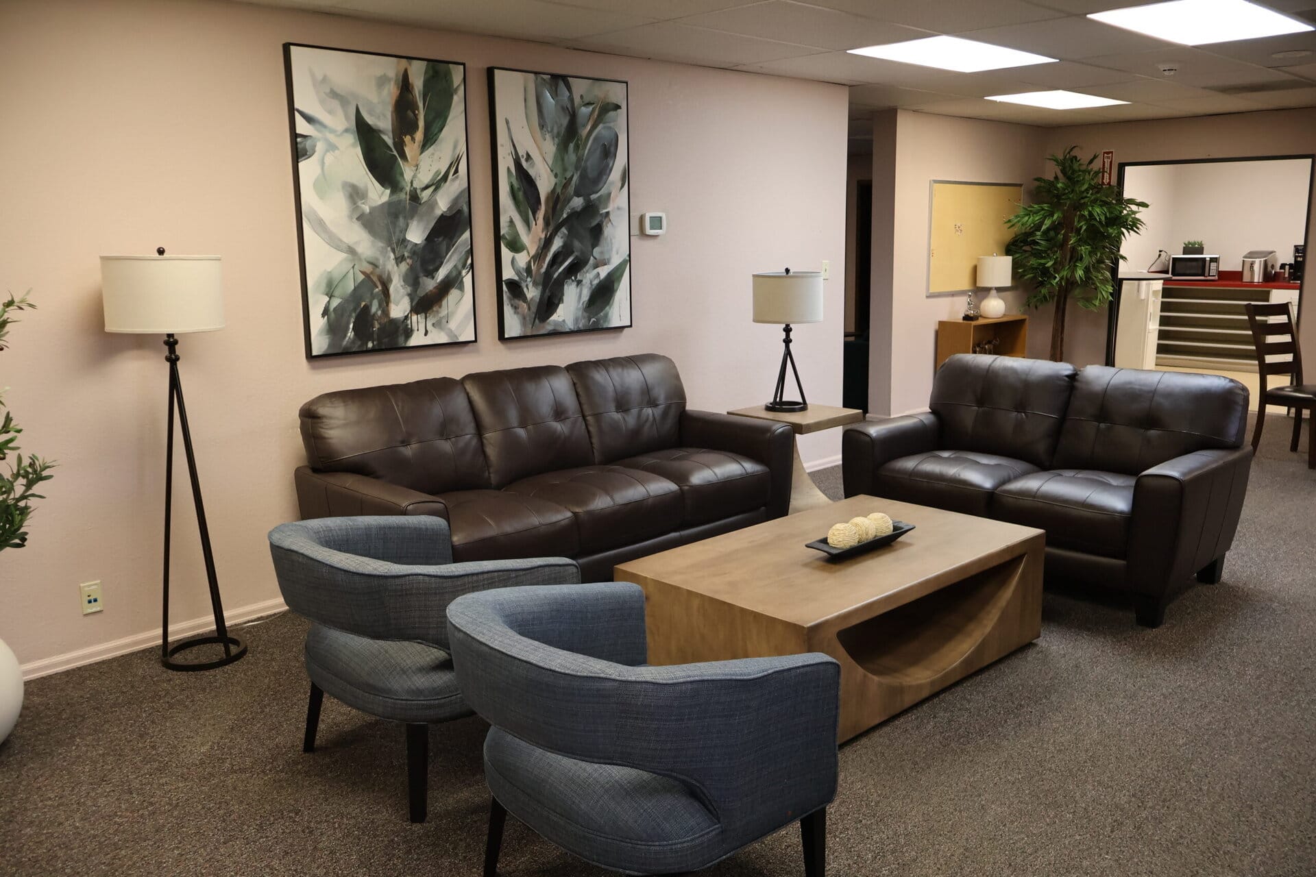 - Comfortable recovery lounge with couches, coffee, tea, snacks, and space to relax or connect
